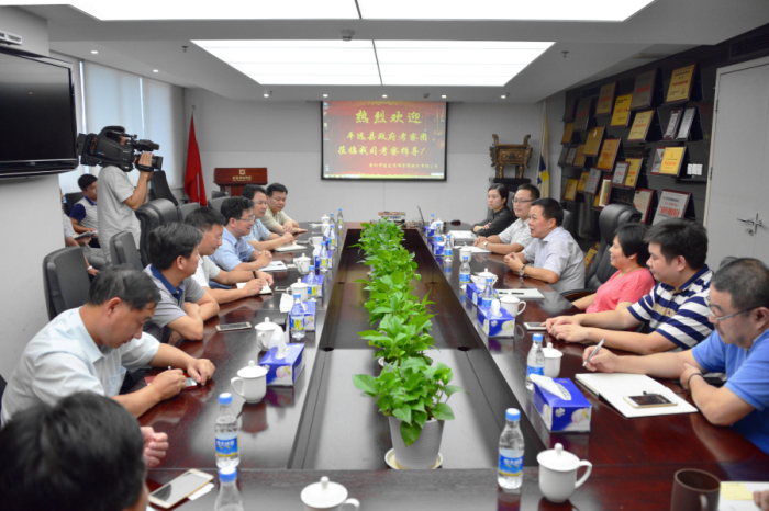 劉海云董事長(zhǎng)(右排左三)向劉許川一行講解建藝集團(tuán)發(fā)展歷程
