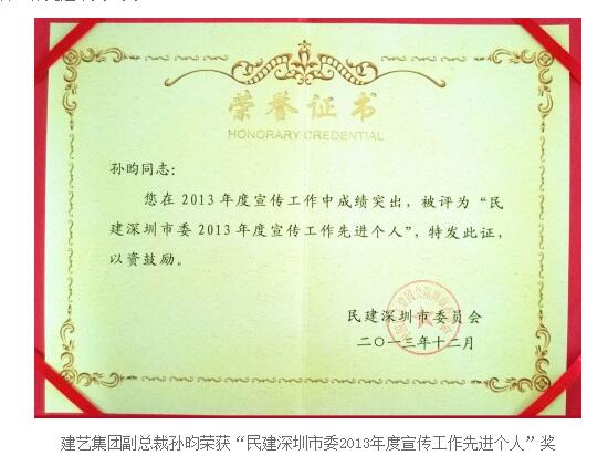 集團(tuán)副總裁孫昀榮獲“民建深圳市委2013年度宣傳工作先進(jìn)個(gè)人”獎(jiǎng)