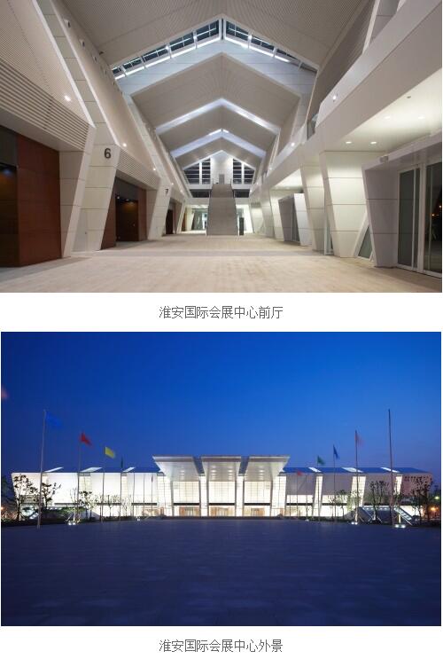 淮安國際會(huì)展中心位于江蘇省淮安市翔宇大道以西,越秀路以南的水渡口中央商務(wù)區(qū),是水渡口CBD板塊的核心區(qū)域,區(qū)位交通便利?;窗矅H會(huì)展中心以其國際風(fēng)格的建筑設(shè)計(jì)和先進(jìn)完善的功能分區(qū),成為淮安向外界展示城市快速發(fā)展及經(jīng)濟(jì)騰飛的標(biāo)志。本工程的設(shè)計(jì)單位——著名的德國GMP國際建筑設(shè)計(jì)有限責(zé)任公司秉承了德意志民族嚴(yán)謹(jǐn)和創(chuàng)新的特點(diǎn),提出了國內(nèi)裝飾界很少采用甚至是國內(nèi)首創(chuàng)的施工要求。淮安國際會(huì)展中心的建筑風(fēng)格簡(jiǎn)潔、統(tǒng)一、真實(shí),展示了一種嚴(yán)謹(jǐn)?shù)膶儆诘聡睦硇灾髁x設(shè)計(jì)風(fēng)格,所有設(shè)計(jì)完全服從于功能、美學(xué)和精神的需要。在呈現(xiàn)整體簡(jiǎn)潔的同時(shí),細(xì)部構(gòu)造和材料的運(yùn)用也體現(xiàn)了德國特有的機(jī)械、細(xì)膩和精致。GMP更注重體現(xiàn)會(huì)展中心建筑本身的結(jié)構(gòu)美,一種源于建筑本身的真實(shí)的結(jié)構(gòu)力學(xué),大跨度鋼結(jié)構(gòu)的結(jié)構(gòu)魅力。