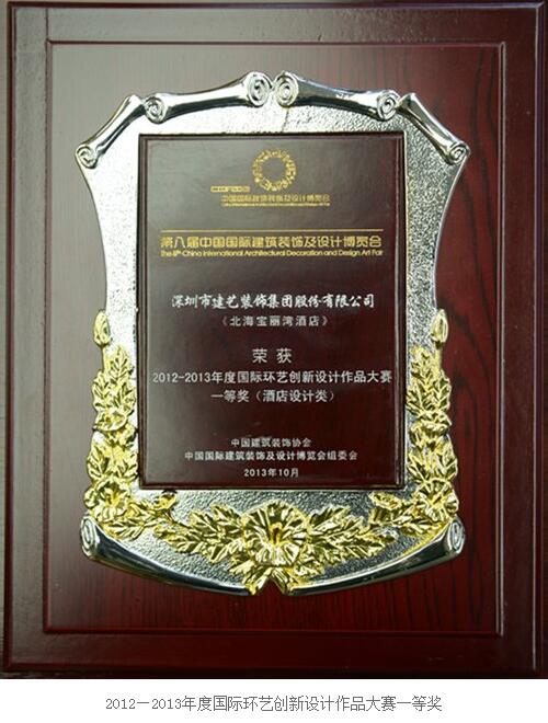 經(jīng)過眾多國(guó)內(nèi)外設(shè)計(jì)專家的共同探討,作品評(píng)審,建藝集團(tuán)憑借著強(qiáng)勁實(shí)力在本次“設(shè)博會(huì)”上斬獲兩大獎(jiǎng)項(xiàng),建藝集團(tuán)榮獲2012-2013年度十大最具影響力設(shè)計(jì)機(jī)構(gòu)(綜合類);由設(shè)計(jì)院郭杰院長(zhǎng)主持設(shè)計(jì)的北海寶麗灣酒店榮獲2012-2013年度國(guó)際環(huán)藝創(chuàng)新設(shè)計(jì)作品大賽一等獎(jiǎng)(酒店設(shè)計(jì)類)。