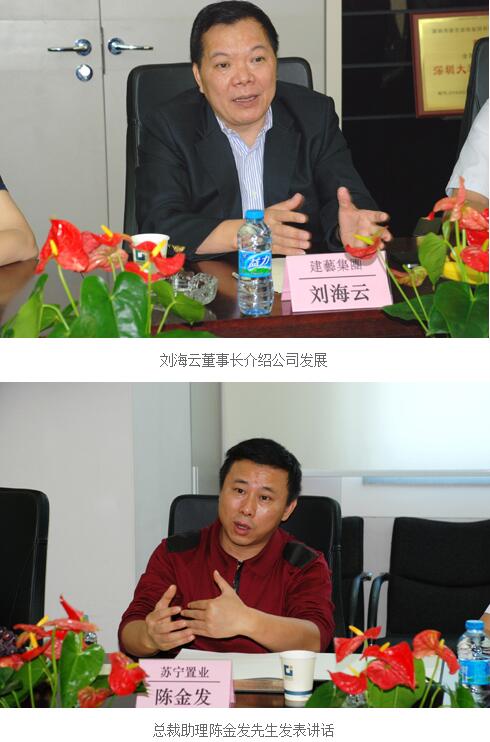 在會(huì)談中,劉董事長(zhǎng)介紹了建藝集團(tuán)近況和未來(lái)發(fā)展前景,以及近年與蘇寧集團(tuán)合作情況,并期待雙方能夠繼續(xù)開(kāi)拓互利共贏的雙邊關(guān)系。陳總助肯定了雙方共同取得的成績(jī),并對(duì)建藝集團(tuán)的各方面情況進(jìn)行廣泛深入的了解。周總助也就行業(yè)的發(fā)展趨勢(shì)和運(yùn)作管理提出了寶貴的意見(jiàn)和建議。與會(huì)人員還對(duì)嶄新時(shí)期的經(jīng)濟(jì)發(fā)展形勢(shì)進(jìn)行了充分交流和探討。最后,雙方就目前戰(zhàn)略合作的范圍拓展和模式創(chuàng)新達(dá)成了統(tǒng)一意向。