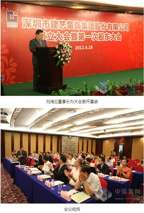 2012年6月28日,深圳市建藝裝飾集團股份有限公司創(chuàng)立大會暨第一次股東大會在深圳市圣廷苑酒店隆重召開。建藝集團全體股東歡聚一堂,董事長劉海云先生致開幕詞,中國建筑裝飾協(xié)會副會長秘書長劉曉一等領導、嘉賓出席了會議并分別為創(chuàng)立大會致賀辭。