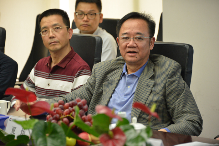 與會的區(qū)領(lǐng)導(dǎo)在認真聽取劉海云董事長的匯報